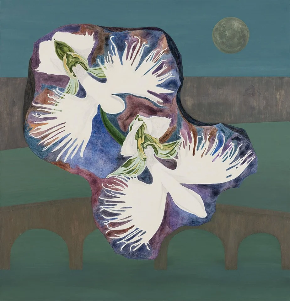 Two egret flowers (Habenaria radiata) are projected onto a landscape with a romantic undertone, creating a subtle tension between the sensation of flight suggested by their bird-like appearance and the confined space they navigate. The central presence of the pair evokes ideas of relational dynamics - both within the couple’s inner world and in relation to the outside. The title alludes to the romantic lens through which the artist envisioned her own life.